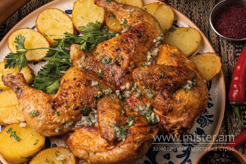 Зовні хрустке та золотисте, всередині – м`яке і соковите м`ясо, а поруч велика порція смачної картопельки.