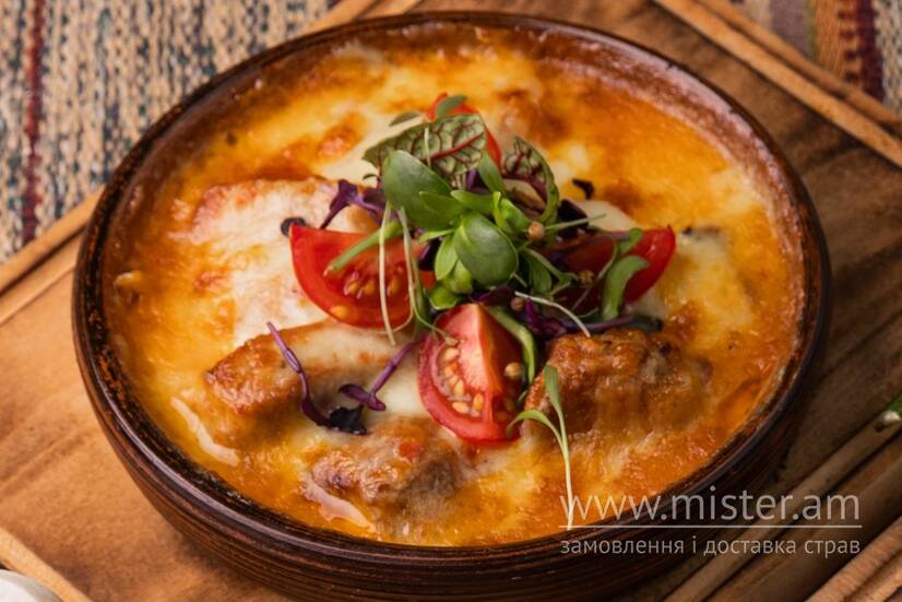 Свинячий ошийок запечений з аджикою та сиром сулугуні.