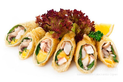 Лосось, огірок, сир Філадельфія, папір рисовий.