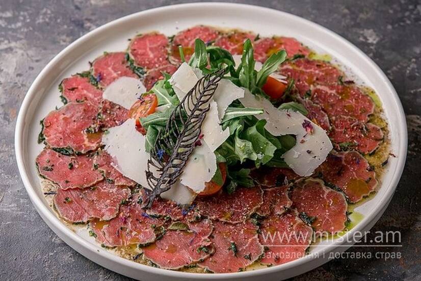 Карпаччо з яловичини з фірмовим соусом з каперсів