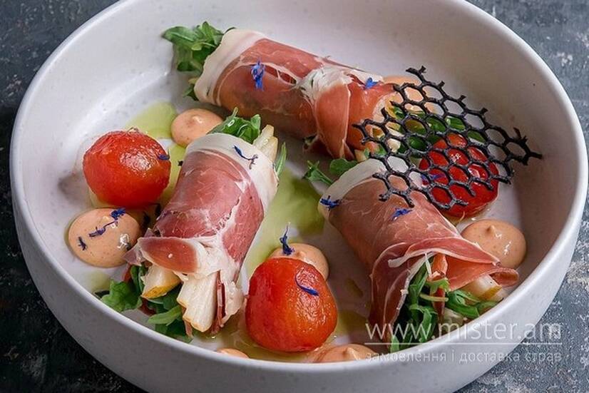 The Truffle Рулетики з прошутто, грушею, сиром Дор Блю, рукколою та томатами Кім Чі