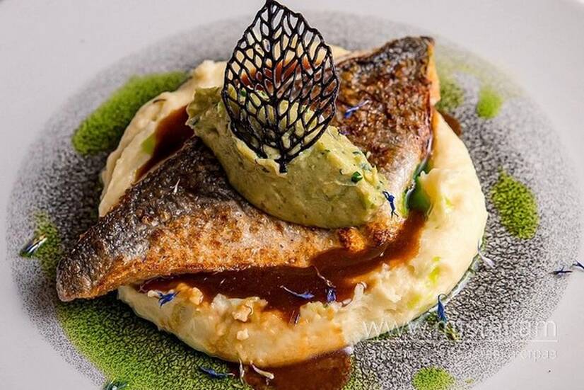 Філе дорадо з картопляним пюре, гуакамоле та унагі