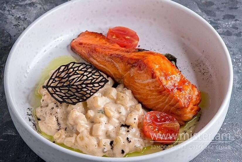 The Truffle Стейк з лосося в глазурі Кім Чі та картопляним різотто