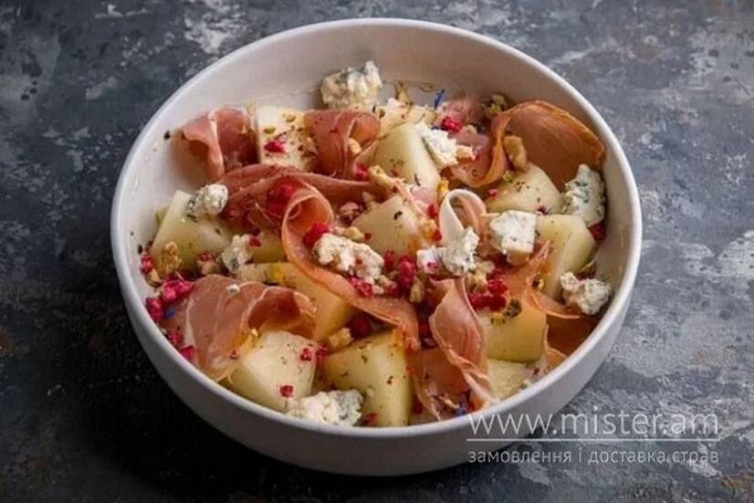 Диня з прошуто, сиром Дор Блю та трюфельним медом