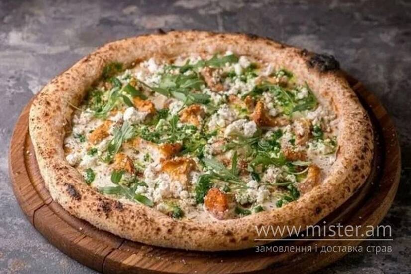 Піца з лисичками, пармезаном та часниковим соусом