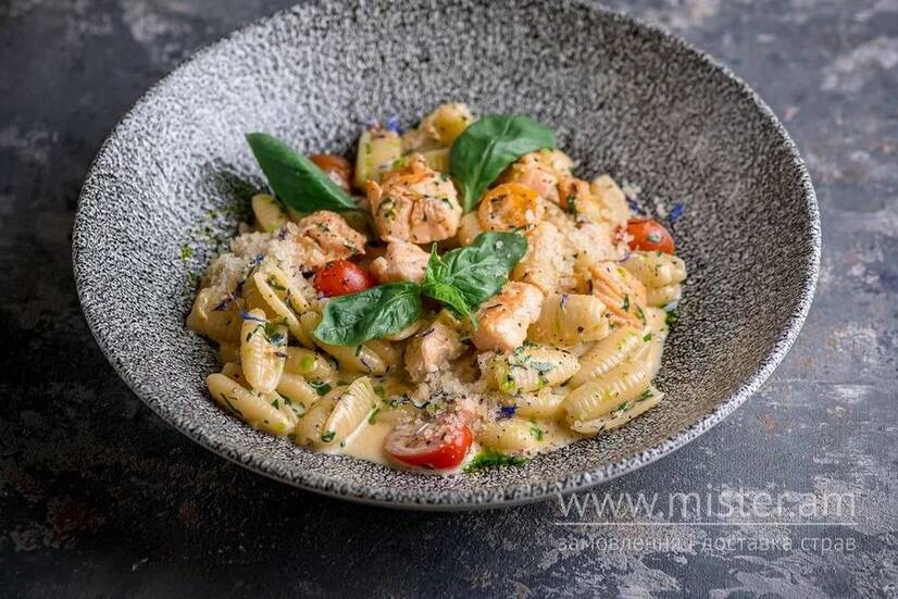 Паста з грибами шиїтаке та ерінгами в кремовому соусі з пармезаном