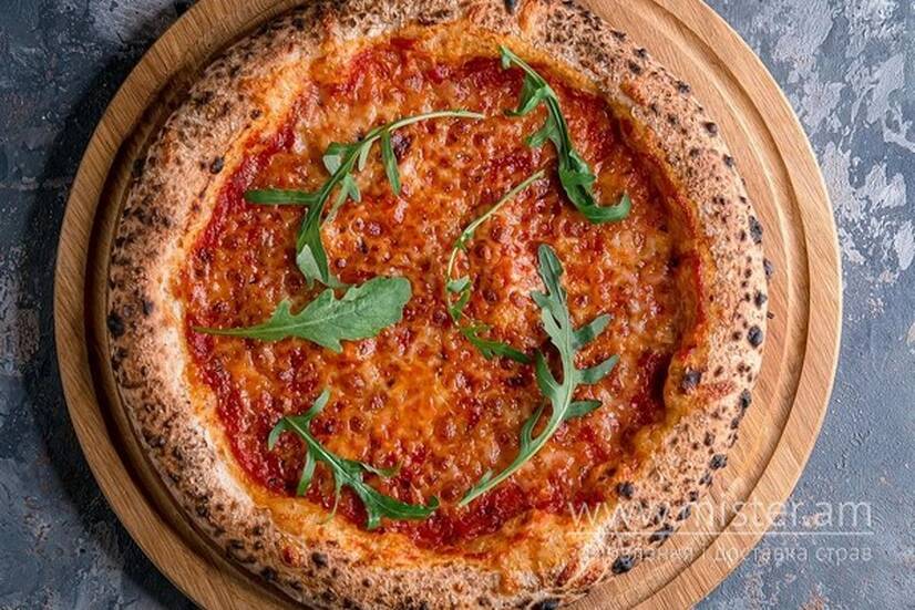 Піца "Цезар" з куркою, пармезаном, томатами черрі та хрумкою цибулькою