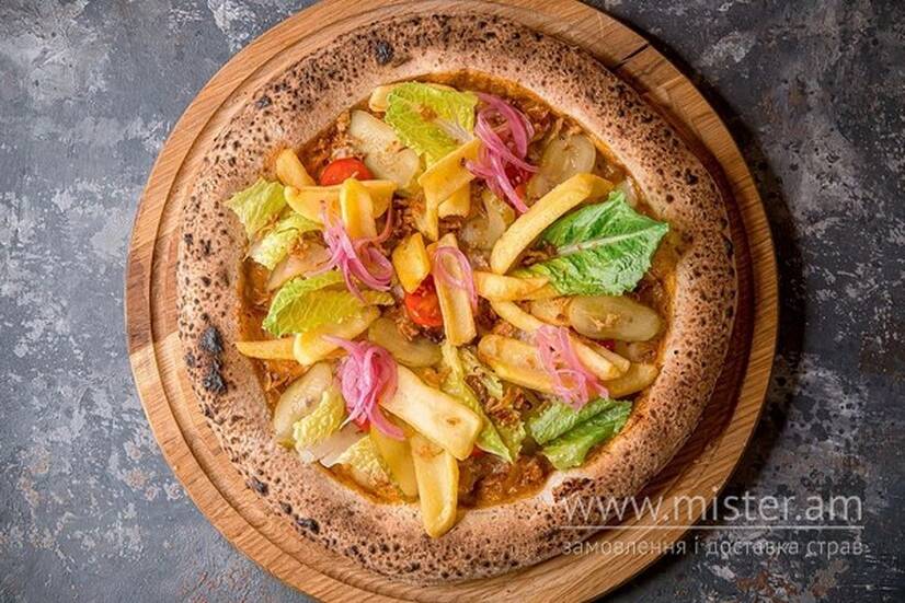 Піца-бургер з мармуровою яловичою котлеткою