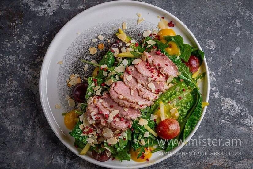 Салат з качиною грудкою і апельсиновим соусом