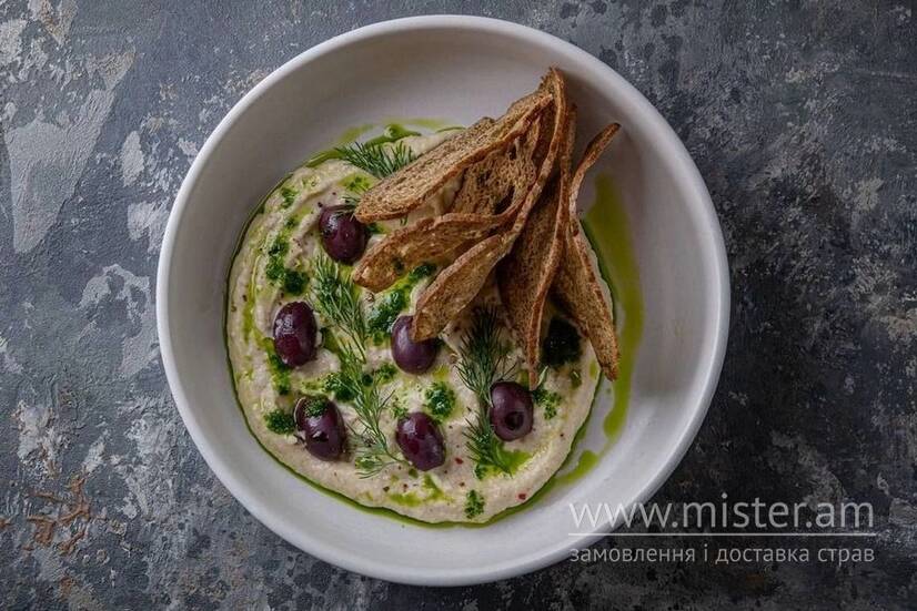 The Truffle Тарама салата з масляною рибою, грецьким йогуртом, каламатами та чіабатою