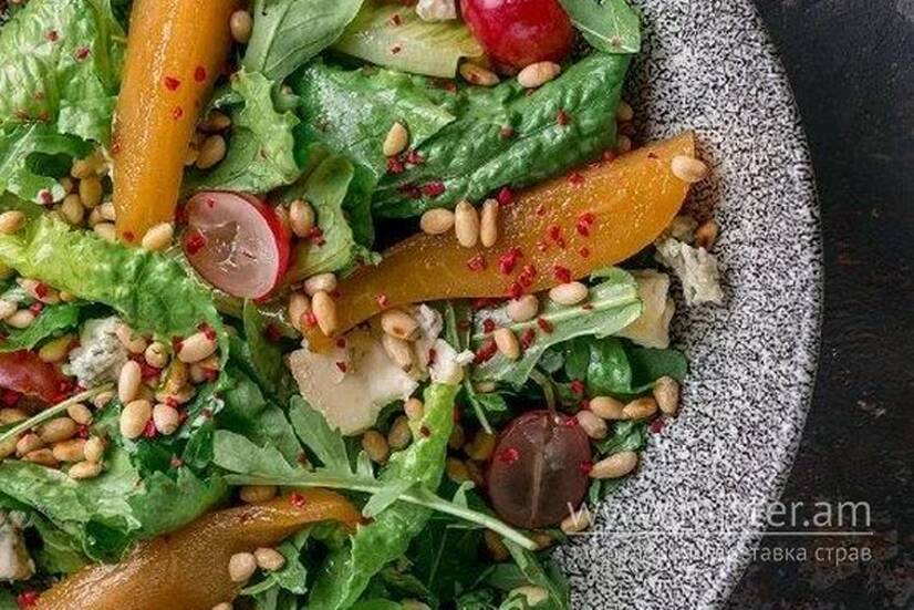 The Truffle Салат з грушею, сиром горгонзола, кедровими горіхами та медово-гірчичним соусом