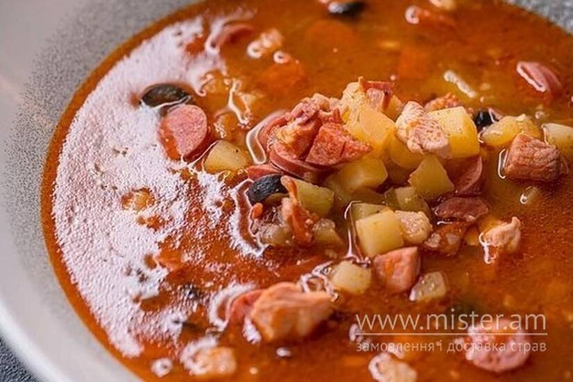 Фірмова солянка з чотирьох видів м`яса зі сметаною