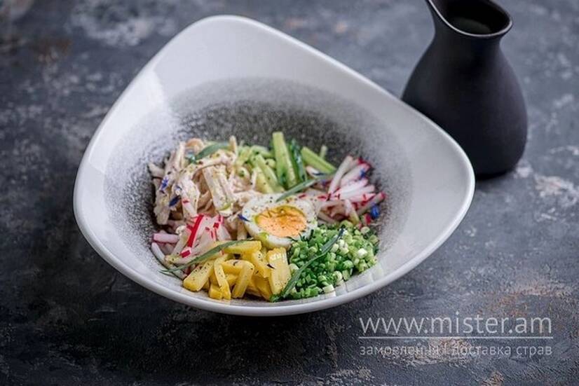 Окрошка з курячою грудкою су-від та фірмовою заправкою
