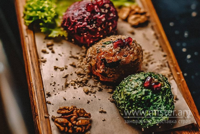 Традиційна грузинська закуска з заправкою з волоських горіхів зі спеціями і часником