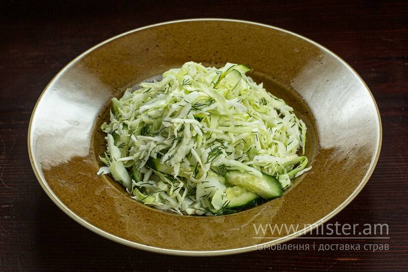 Капуста, огірок, кріп, лимонний сік, домашня олія.