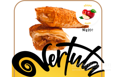 Тісто філло, яблуко, нарізане кубиками сортів "Симиренко" і "Голден", родзинки, кориця.