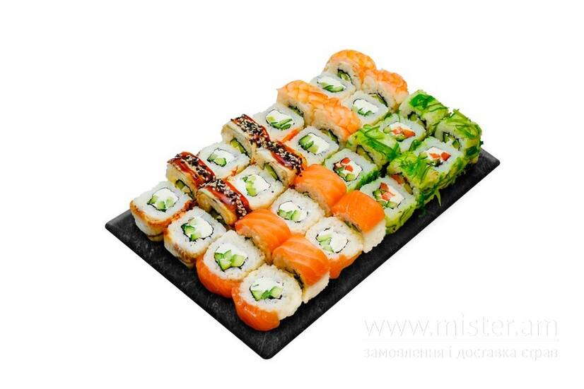Філадельфія з вугрем Лайт; Філадельфія Лайт; Чука рол крем-сир; Рол Лайт з креветкою, імбир, васабі, соєвий соус.