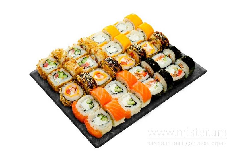Філадельфія Лайт, Чікен Темпура, рол "3 сира", рол Фудзі, рол Боніто, імбир, васабі, соєвий соус.