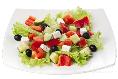 Свіжі овочі, маслини, сир Фета, олія рослинна.