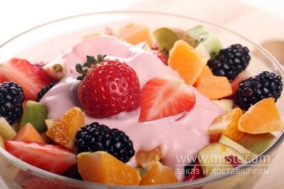 Ківі, апельсин, банан, яблуко, йогурт, м'ята