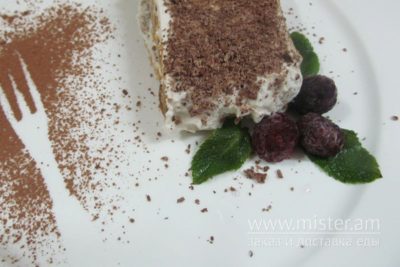 Савоярді, коньяк, сир Маскарпоне, вершки, яйце, цукор, топінг, шоколад, м'ята