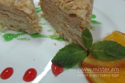 Тісто листкове, крем заварний, топінг, ягоди, апельсинові цукати, м'ята