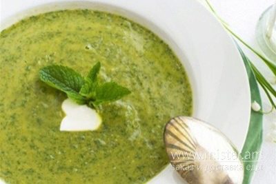 Шпинат, бульйон, цибуля ріпчаста смажена, вершки, зелень.