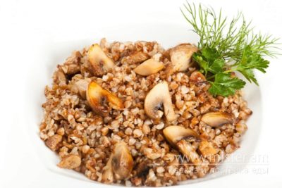 Крупа гречана, гриби смажені, масло вершкове, зелень