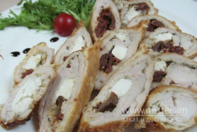 Рулет з курки з сиром фета та в'яленим помідором