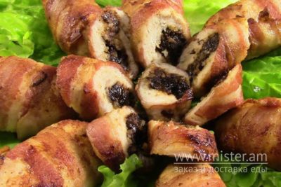 Амстердам Рулетики з свинини з чорносливом в беконі
