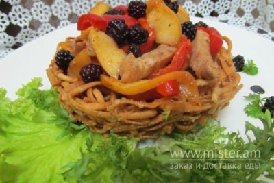Свинина з овочами в кошику