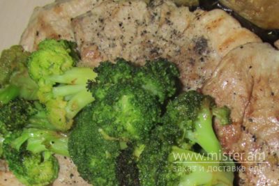 Філе свиняче, баклажан, кабачок, брокколі, черрі, зелень