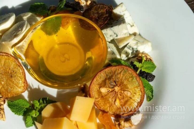 Моцарела, пармезан, дор-блю, сухофрукти, мед.