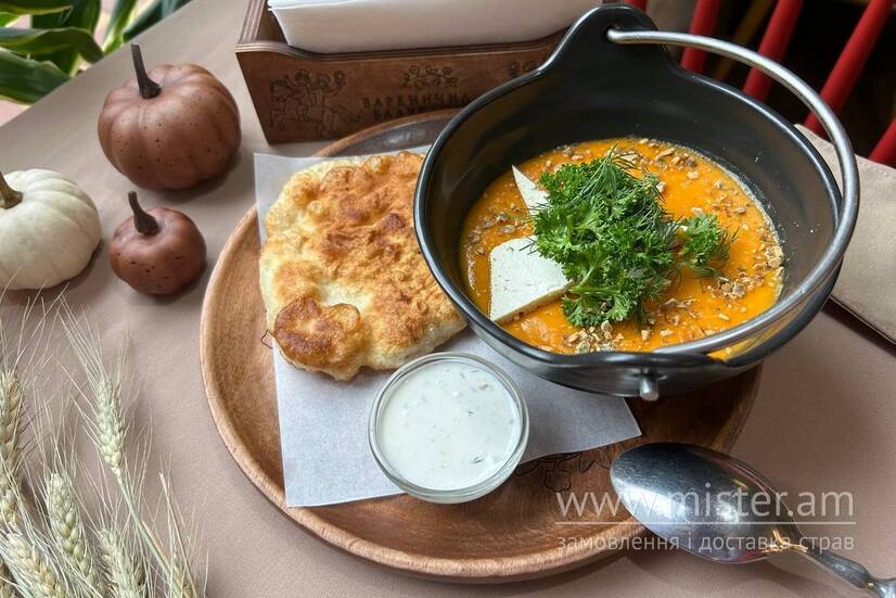 Варенична Балувана Галя Крем-суп із гарбузи з підкопченою бринзою та лангошем