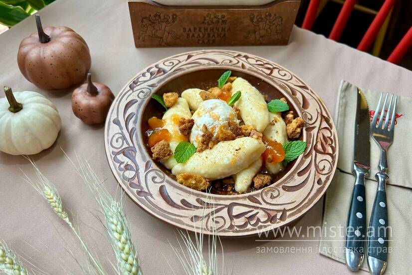 Варенична Балувана Галя Палюшки з фірмовим гарбузовим морозивом та домашнім джемом