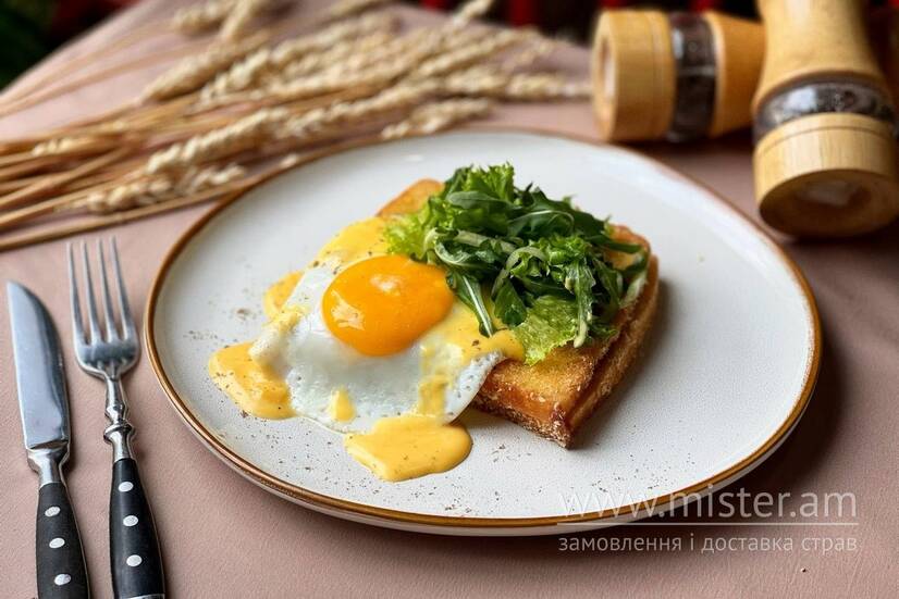 Тост з індичкою, печеним солодким перцем та смаженим яйцем