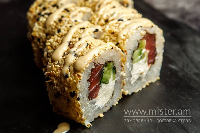 Рис, норі, крем-сир, огірок, тунець, кунжут, соус Вітело-тонато.