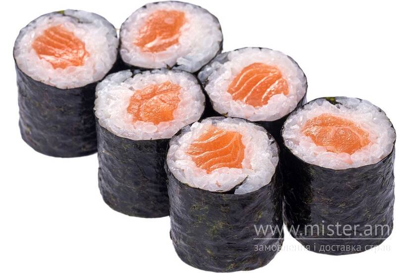 Поєднання смаків свіжого лосося з хрустким огірком і норі.