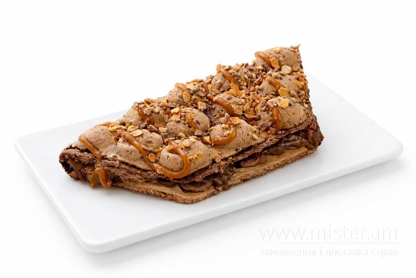 Шоколадна вафля власного виробництва, паста шоколадна, паста солона карамель, топінг шоколад, арахісова крихта, крихти молочного шоколаду.