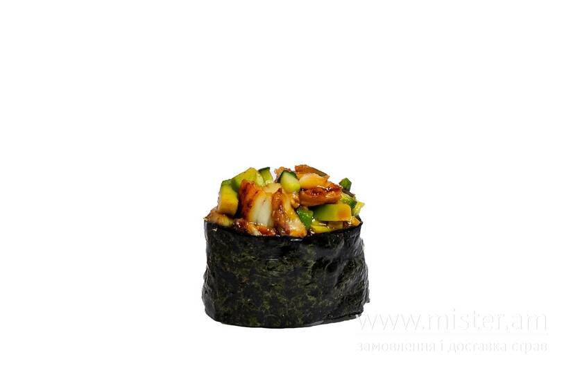 Норі, рис, авокадо, огірок, вугор, соус "Унагі".