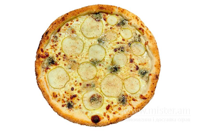 Вершковий соус, сир моцарела, сир горгонзола, груша, горіх кешью.