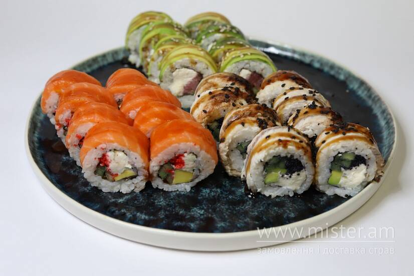 - комплект на 1 особу (імбир, васабі, соєвиий соус, палички) - (2 шт.).