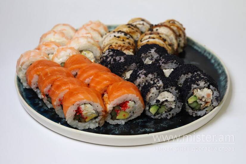 - комплект на 1 особу (імбир, васабі, соєвиий соус, палички) - (2 шт.).