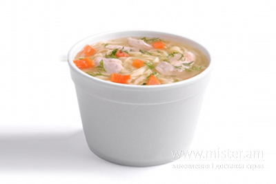 Ароматний бульйон, зварений на соковитій курці з додаванням курячого філе, домашньої локшини, а також зі свіжою морквою та зеленню.