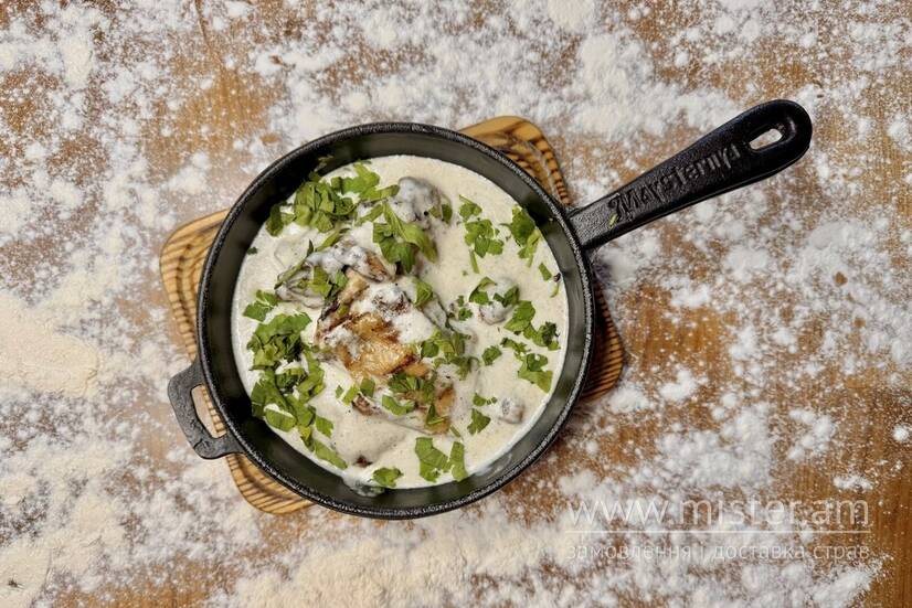 Куряче стегно обсмажене на грилі, в вершково часниковому сосусі.