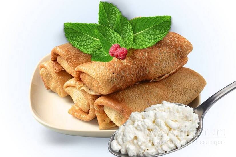 Борошно пшеничне в/г, яйця курячі, цукор, молоко коров’яче, сіль, домашній кисломолочний сир, ванільний цукор.