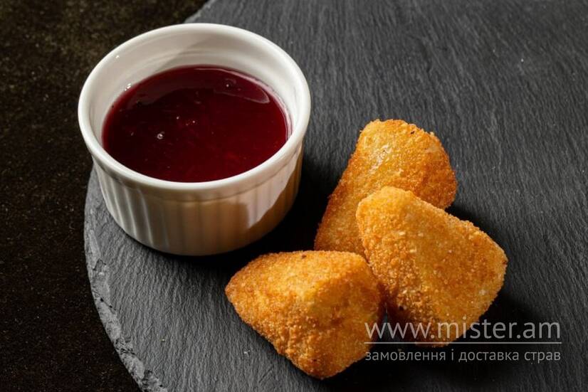 Сир камамбер в хрусткій паніровці +соус вишневий в соуснику.