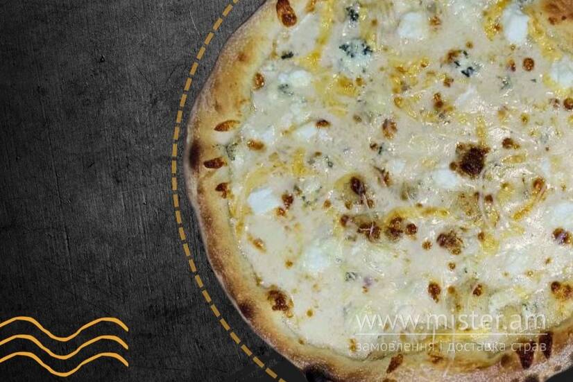 Тісто гречане, гауда, фета, дор-блю, пармезан, моцарела, соус білий.