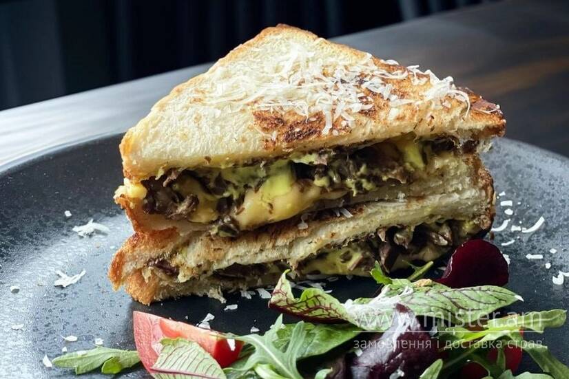 М’які, соковиті телячі щічки томляться до ідеальної текстури, доповнені тягучим сиром, ароматним соусом та хрусткою скоринкою обсмаженого хліба. Завершує композицію мікс салату, який додає свіжості та балансує багатий смак страви.