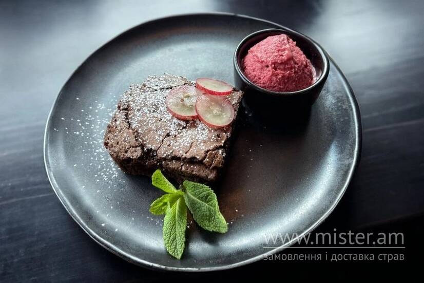 Брауні з сорбетом Вишня-Глинтвейн